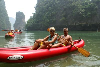 ...etwas zu Essen. Anschließend fuhren wir an einen kleinen Fluss mitten im Mangrovenwald zum baden. Das war nach der schweißtreibenden Padelei sehr sehr angenehm. Dann ging es wieder zurück nach Aonang, wo wir einen tollen Tag...