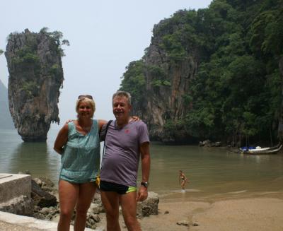 Ort (ich glaube der Name war Sansuri) gab es an der Strasse viele kleine Buden zum shoppen. Nach gefühlt einer Stunde, kannten wir die meisten davon, dann gind es weiter, in nördlicher Richtung immer entlang der Westküste. Wir hatten super Wetter, viel Sonne und freie Sicht (die Rauchwolken aus Sumatra haben sich im Lauf des Tages, an dem wir auf James Bond Island waren bereits verzogen) an diesem Tag. So ging es vorbei diversen "View Points" und vielen Stränden.