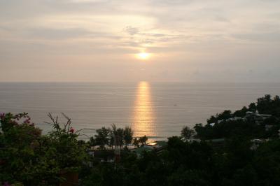 Urlaubsbekanntschaft (ein Polizist) voll cool ohne Helm. Sollten 1000 Barth (25 €) Strafe zahlen, aber mit deutschem Dienstausweis ist er dann so davon gekommen. Also weiter mit Helm :-), vorbei am Kampala Beach zum Surin Beach, der uns sehr empfohlen wurde. Kurz davor war noch ein Aussichtspunkt...