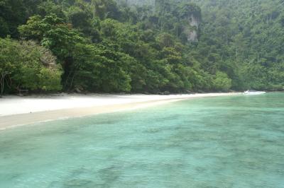 ...zum Monkey Beach. Der Strand so gut wie leer, sehr schön mit ein paar...
